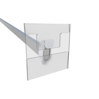Unique frameless graphic holder fabricated from PETG. Uses our patented silicone rubber backing which stretches to fit 98% of all rail arms. Insert 100mm x 100mm sign from either side.